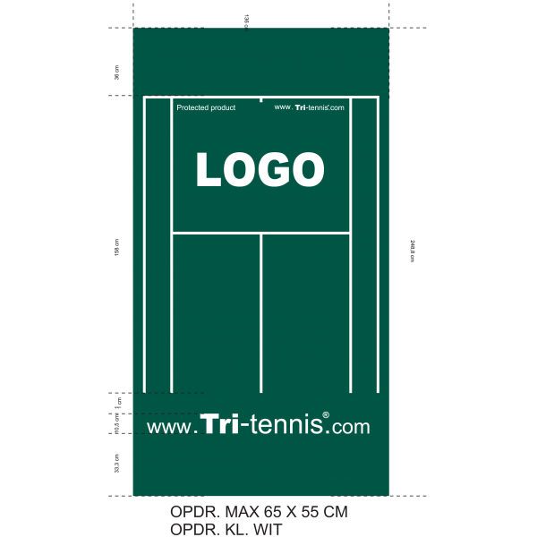 U dient de bestanden van uw logo(s) in EPS-lijn (geen pixel) per e-mail bij ons aan te leveren o.v.v. uw factuurnummer en bestelnummer, zodat wij onze drukker de opdracht kunnen geven om een proefdruk voor u gereed te maken. Uw logo(s) wordt door onze drukker binnen de maximale afmetingen geschaald en opgemaakt op het padelzeil. U ontvangt van ons zo spoedig mogelijk een proefdruk welke u eveneens per e-mail dient te accoderen. Na ontvangst van uw betaling en akkoord op onze toegezonden proefdruk zullen wij het drukproces in gang stellen. Houdt er rekening mee dat dit (afhankelijk van de periode) minimaal 10 tot 15 werkdagen in beslag neemt.